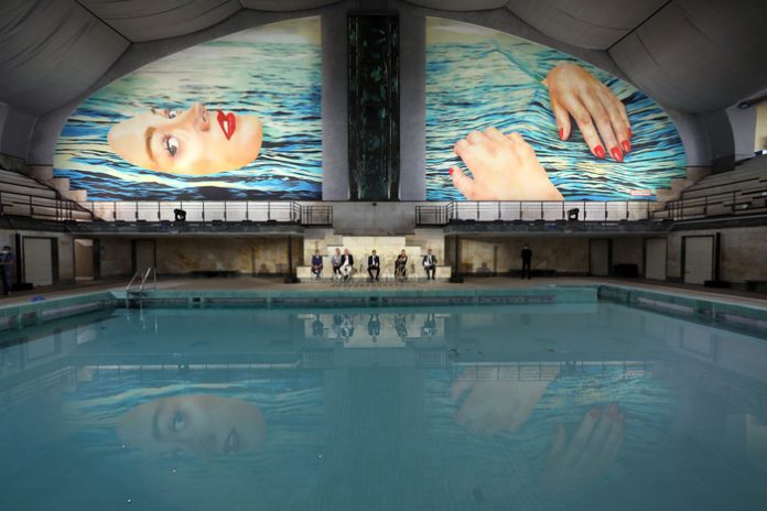 Si intitola ‘Be Water’ il gigantesco murales, lungo 30 metri e alto 10, firmato dall’artista Maurizio Cattelan e dal fotografo Pierpaolo Ferrari, inaugurato il 6 settembre, durante la Milano Design Week 2021, dal sindaco Giuseppe Sala all’interno della storica piscina Cozzi. L’installazione, promossa dal Comune di Milano e da Milano Sport e realizzata in collaborazione con il brand di moda spagnolo Desigual, riproduce il corpo di una donna distesa completamente ricoperto d’acqua, lasciandone emergere solo le mani e il viso.