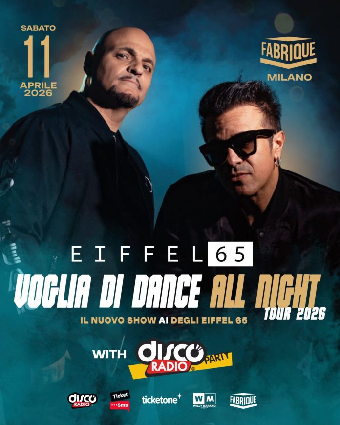 I biglietti per “Voglia di dance all night” sono disponibili in prevendita al link https://linktr.ee/eiffel_65; Discoradio è partner ufficiale dell’evento.