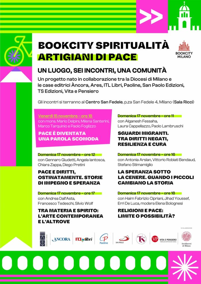 L’appuntamento di venerdì si inserisce nella proposta dal titolo “Artigiani di pace” curata da sette case editrici cattoliche milanesi che, in collaborazione con la Diocesi ambrosiana, per il secondo anno consecutivo hanno unito le forze per dare vita a un programma comune di eventi all’interno di BookCity 2024 nel filone tematico “Filosofia, Psicologia e Spiritualità”: Àncora, Ares, ITL Libri, Paoline, San Paolo Edizioni, TS Edizioni e Vita e Pensiero gli editori coinvolti.