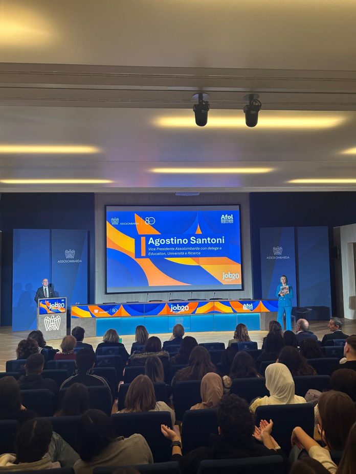 “Job20 si inserisce pienamente nella strategia di Assolombarda dedicata al capitale umano – ha detto Agostino Santoni, Vicepresidente di Assolombarda, con delega a Education, Università e Ricerca – riconosciuto come fattore decisivo di sviluppo economico e sociale. In un momento storico in cui l’automazione, la digitalizzazione e la transizione green stanno ridefinendo le professioni, la capacità di mettere in connessione formazione, impresa e innovazione è la chiave per mantenere il nostro territorio competitivo e inclusivo: un ponte che unisce aspirazioni e opportunità, idee e competenze, talenti e bisogni produttivi”. “Stiamo assistendo a un momento di grande trasformazione del lavoro. Siete voi giovani – ha detto il Vicepresidente Agostino Santoni rivolto ai numerosi studenti presenti – a dare forma all’impresa del futuro”.