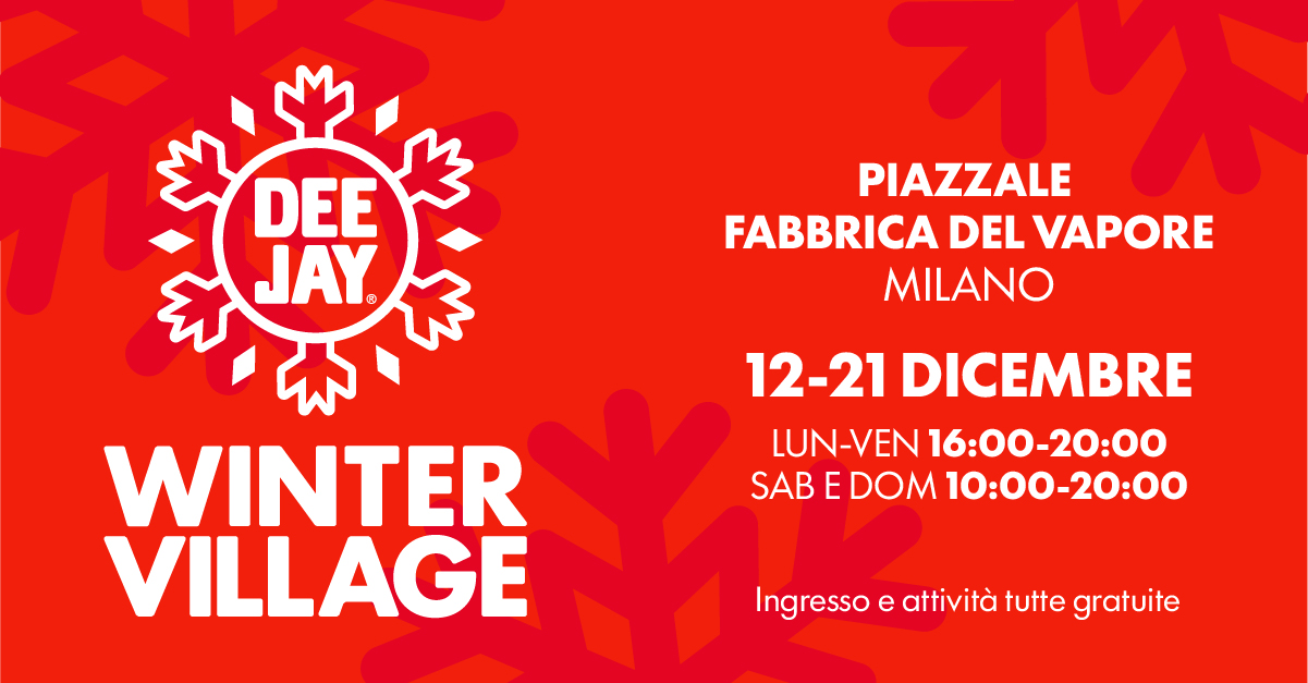 “Deejay Winter Village” è aperto da lunedì a venerdì dalle 16.00 alle 20.00 e nel weekend dalle 10.00 alle 20.00 ed è un evento che arricchisce il palinsesto di iniziative di “FUORI MASSENA”, un progetto unico nel panorama radiofonico firmato Radio Deejay, Radio Capital, Radio m2o e OnePodcast che si inserisce all’interno di VAPORE D’INVERNO, il programma culturale invernale della Fabbrica del Vapore promosso dall’Assessorato alla Cultura del Comune di Milano. Attraverso un inedito cartellone di eventi, da novembre 2025 a marzo 2026, “FUORI MASSENA” dà vita allo spirito e all’essenza delle 4 voci di Elemedia, tra grande musica live, forme artistiche diverse, intrattenimento e interazione con il pubblico.