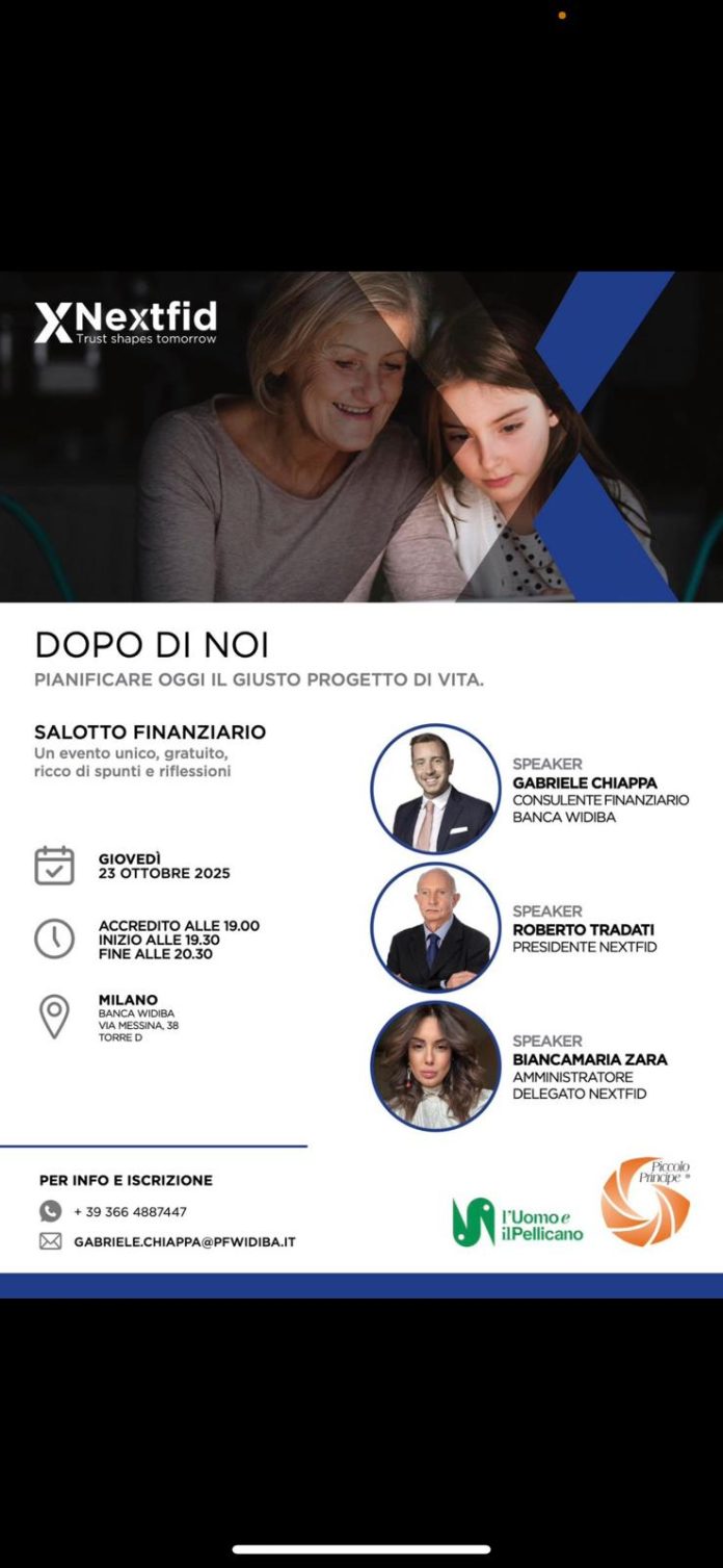 Un appuntamento da non perdere per chi opera nel sociale, per le famiglie e per i professionisti interessati alla pianificazione patrimoniale con finalità etiche e inclusive. Presso la sede milanese di Banca Widiba si terrà il Salotto Finanziario, un evento dedicato alla tutela patrimoniale dei soggetti fragili, con particolare attenzione alla legge “Dopo di Noi”.