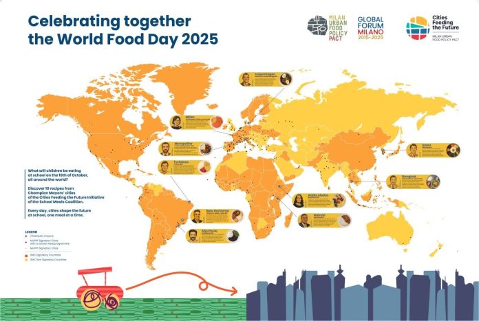 Domani, giovedì 16 ottobre, infatti, per celebrare insieme la Giornata Mondiale dell’Alimentazione, i bambini e le bambine delle scuole milanesi e di altre sette città del mondo, assaggeranno un menù speciale che racconta e ricorda le loro tradizioni culinarie. Una grande festa del cibo sano e di qualità che coinvolgerà in totale 3,3 milioni di bambini e bambine tra Milano, San Paolo, Addis Abeba, Copenaghen, Bangkok, Seoul, Montpellier e Nairobi.