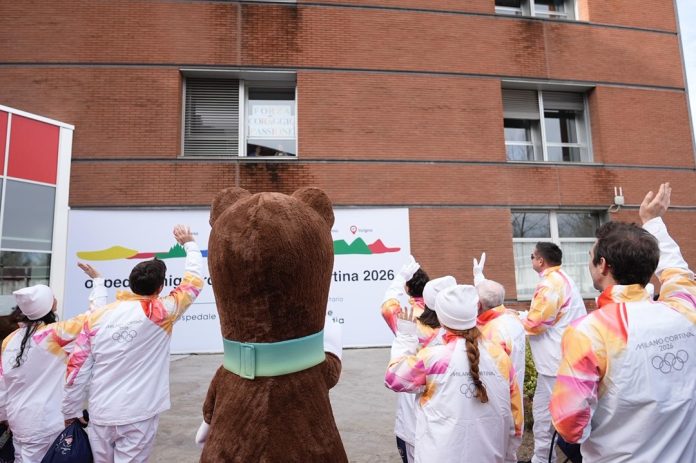 I portatori della Fiamma Olimpica si sono fermati sotto le finestre del reparto di Terapia Intensiva, dove sono attualmente ricoverati i giovani feriti nell’incidente di Crans-Montana.