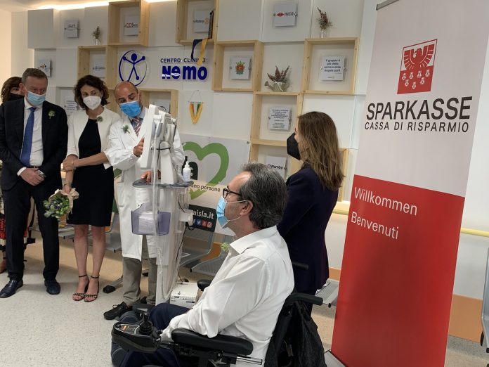 I Centri Clinici NeMO nascono dalla volontà degli stessi pazienti. “Una comunità di persone con SLA, SMA e distrofie muscolari che ha imparato a fare della fragilità la propria forza, facendo i conti ogni giorno con la sfida del limite imposto dalla malattia. – spiega Alberto Fontana presidente dei 7 Centri presenti in Italia (Milano, Roma, Genova, Brescia, Ancona, Napoli e Trento) – e che oggi, insieme, continua a lottare per affermare di poter contribuire a dare risposte nuove, che possano generare cambiamento. Siamo grati ad AISLA, Sparkasse e alle Istituzioni perché giornate come quelle di oggi ci permettono di consolidare alleanze per continuare ad offrire risposte adeguate a tutte le persone che convivono con una patologia grave e neurodegenerativa come la SLA dal forte impatto clinico e assistenziale.”