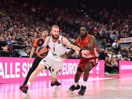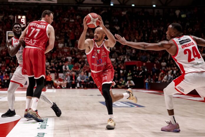 IL PRIMO TEMPO – Pistoia segna solo da tre, ma segna. Payton Willis segna 12 punti nel primo quarto incluso un gioco da quattro punti, due triple le mette anche Jordon Varnado E’ 6 su 8 dopo un quarto e così l’Olimpia deve stringere i denti per reggere l’urto. Scivola a meno sei su una prodezza di Willis, in parte compensata dalla tripla dall’angolo conclusiva di Pippo Ricci con la quale Milano torna a meno tre, 24-21. Nel secondo quarto però il livello di rendimento della difesa sale di tono. Pistoia non segna per tre minuti. L’Olimpia piazza un parziale di 10-0 che contiene due triple consecutive, di Ricci ancora e poi di Tonut. Il vantaggio tocca i sette punti, prima che torni ad operare Jordon Varnado con la terza tripla della sua partita. L’Olimpia si affida alla regia occulta di Voigtmann e gioca di squadra anche perdendo Ricci per un taglio al volto. In un primo tempo da 20-14 a rimbalzo e nove palle rubate riesce a chiudere il tempo sul più otto, 41-33.