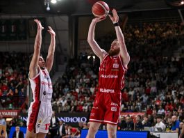 IL SECONDO TEMPO – L’Olimpia raggiunge il massimo vantaggio, dieci punti, poi respinge due volte l’assalto di Pistoia che torna a centrare triple con Willis, Varnado, anche Moore. Improvvisamente come altre volte l’Olimpia smarrisce lucidità in difesa e in attacco. Pistoia ne approfitta e con Melli gravato di tre falli (il terzo è un tecnico per flopping) sorpassa e vola a più tre con una schiacciata di Varnado. L’Olimpia qui serra le fila. Voigtmann dalla media e Hall con due tiri liberi certificano il 4-0 che le permette di rimettere la testa avanti 57-56 dopo tre quarti. L’Olimpia parte 7-0 nel quarto periodo con due canestri in penetrazione di Devon Hall e in mezzo una tripla di Ricci così torna a più otto e costringe Coach Brienza al time-out. Una schiacciata di Voigtmann su assist di Melli scava il nuovo più dieci a metà del periodo,. Subito dopo Moore completa un gioco da tre punti. La risposta è una clamorosa tripla di Shields allo scadere dei 24 secondi e subito dopo Voigtmann restituisce la cortesia a Melli per la schiacciata del più 12 a meno di tre minuti dalla fine. A questo punto l’Olimpia porta a casa la vittoria senza eccessivi patemi, 78-72.
