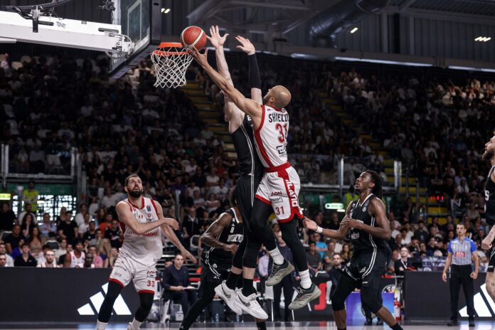 L’Olimpia aveva la partita in mano dopo una battaglia di 40 minuti in cui l’inerzia ha cambiato sponda tante volte. Poi sul più tre a 36 secondi dalla fine mentre Toko Shengelia ha segnato due volte, il canestro del sorpasso è stato una prodezza, l’Olimpia è mancata nell’esecuzione e ha perso 68-67.