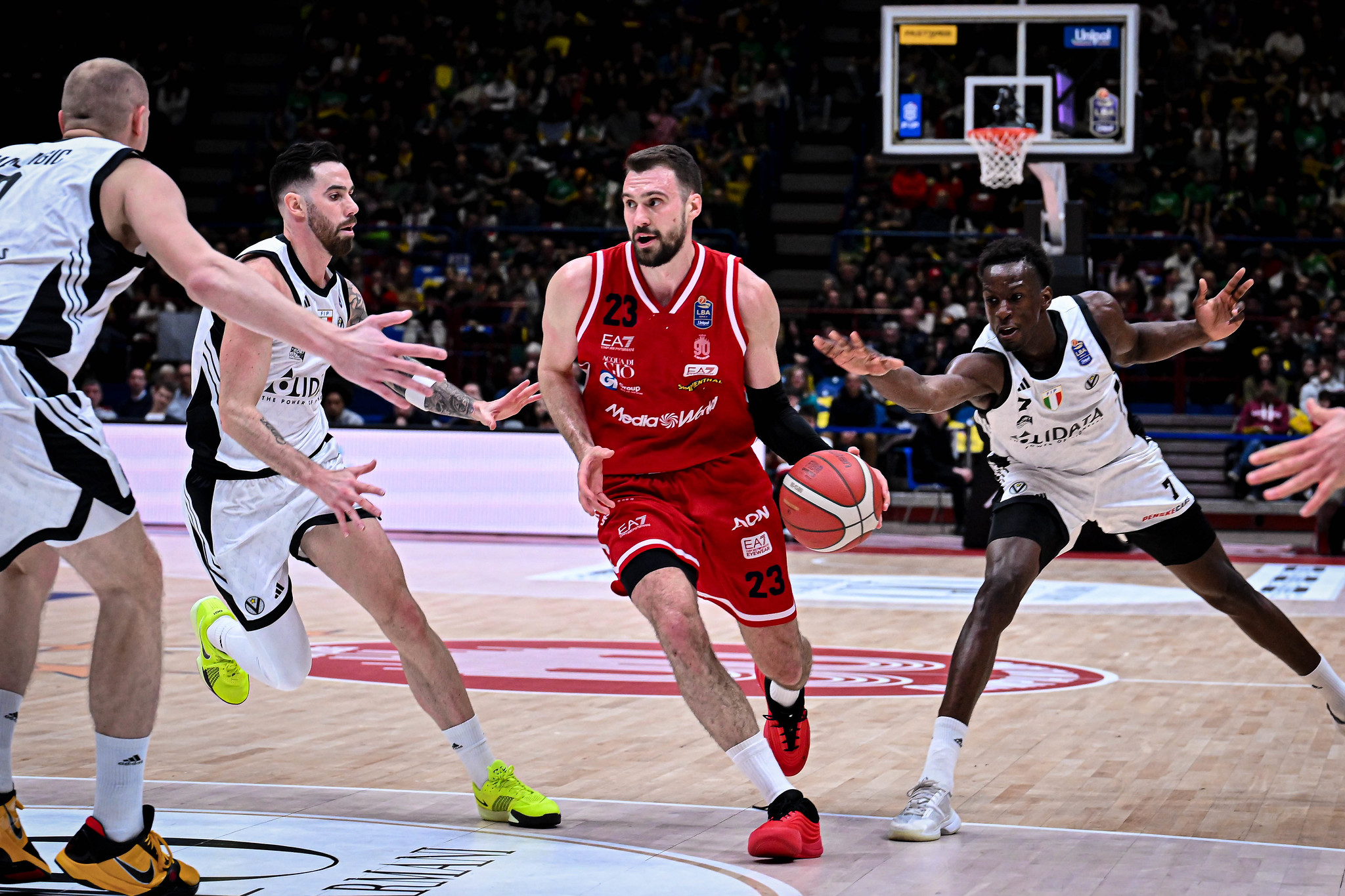 Sulle rotazioni: “Io credo nelle rotazioni relativamente strette, nel lasciare in campo i giocatori un po’ più a lungo, ma effettivamente nelle ultime settimane siamo stati un po’ troppo costretti a ruotare pochi elementi. Quello che mi spaventa andando in campo già martedì e poi giovedì è il sovraccarico sugli esterni con il rischio che si facciano male com’è capitato a Bolmaro. Nei lunghi siamo più coperti perché Dunston e Totè possono sempre aiutarci. Vedo però senso di responsabilità e così anche in emergenza troviamo le energie fisiche e mentali che ci permettono di guardare avanti con positività. Ma già martedì abbiamo una gara difficilissima e servirà tutto ancora”.