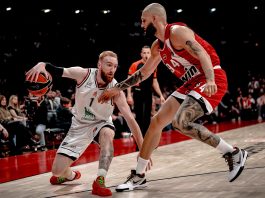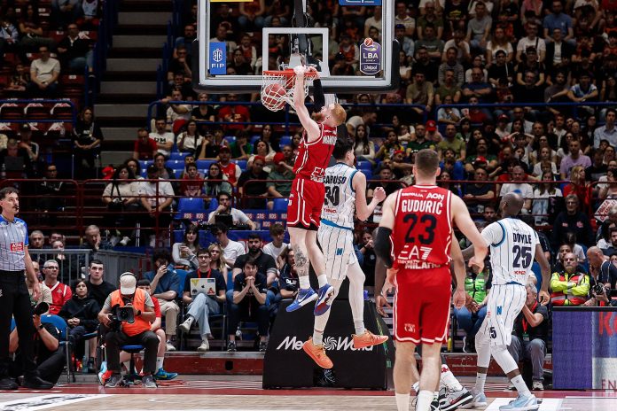 IL PRIMO TEMPO – L’Olimpia parte un po’ molle in difesa e Napoli ne approfitta per colpire a ripetizione e produrre 16 punti nei primi cinque minuti. Però non riesce ad allungare. Tre volte va a più cinque, ma Milano risponde ogni volta prima con Armoni Brooks (due volte segna in runner, la seconda con un gioco da tre punti) e poi al suo ingresso Ricci mette subito un missile dopo un jumper di LeDay e una schiacciata in campo aperto di Ellis. L’Olimpia conquista quattro punti di vantaggio sul 25-21 poi Naz Mitrou-Long piazza un personale 5-0 con una tripla da nove metri e una penetrazione. Ricci a rimbalzo e Bolmaro in entrata prendendo il secondo fallo di Caruso consentono a Milano di finire il primo quarto avanti 29-27. Napoli sorpassa immediatamente con la prima tripla di Savion Flagg. Per qualche possesso è un botta e risposta offensivo che coprendo una tripla di Mannion e due liberi di Diop che forza il secondo fallo di Mitrou-Long. Dopo una schiacciata lungolinea di Mannion, l’inerzia passa dalla parte di Milano e Coach Repesa usa il suo primo time-out. Ma l’Olimpia insiste con tre tiri liberi di Guduric e poi ancora una sua entrata che sfrutta un “seal” di Diop. Brooks a rimbalzo firma il più nove. La seconda parte del secondo quarto è offensivamente di alto livello. Bolmaro e Mannion scavano 13 punti di vantaggio. Napoli si rimette in ritmo con Doyle e Totè, ma poi non regge l’urto interno di LeDay. Ellis obbliga Mitrou-Long a spendere il terzo fallo, la difesa sale di colpi e il tempo lo chiude Brooks con una tripla che vale il 63-43.