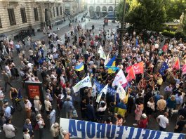 Manifestazione pro Draghi in Piazza della Scala di Italia Viva +Europa...