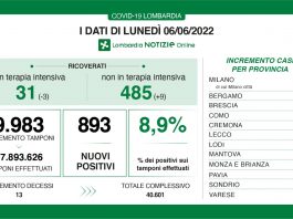 Coronavirus, aggiornamento 6 giugno, 13 decessi e 893 nuovi casi nelle...