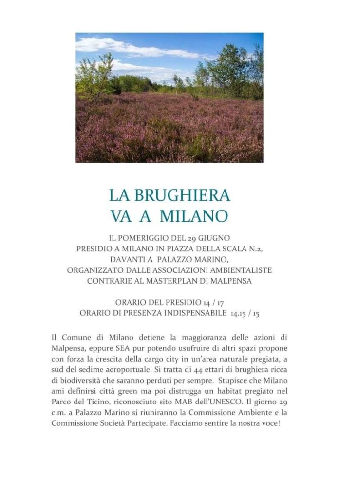 Il Comune di Milano detiene la maggioranza delle azioni di Malpensa, eppure SEA pur potendo usufruire di altri spazi propone con forza la crescita della cargo city in un’area naturale di pregio nel Parco del Ticino: la brughiera del Gaggio, riconosciuto sito MAB dell’Unesco.