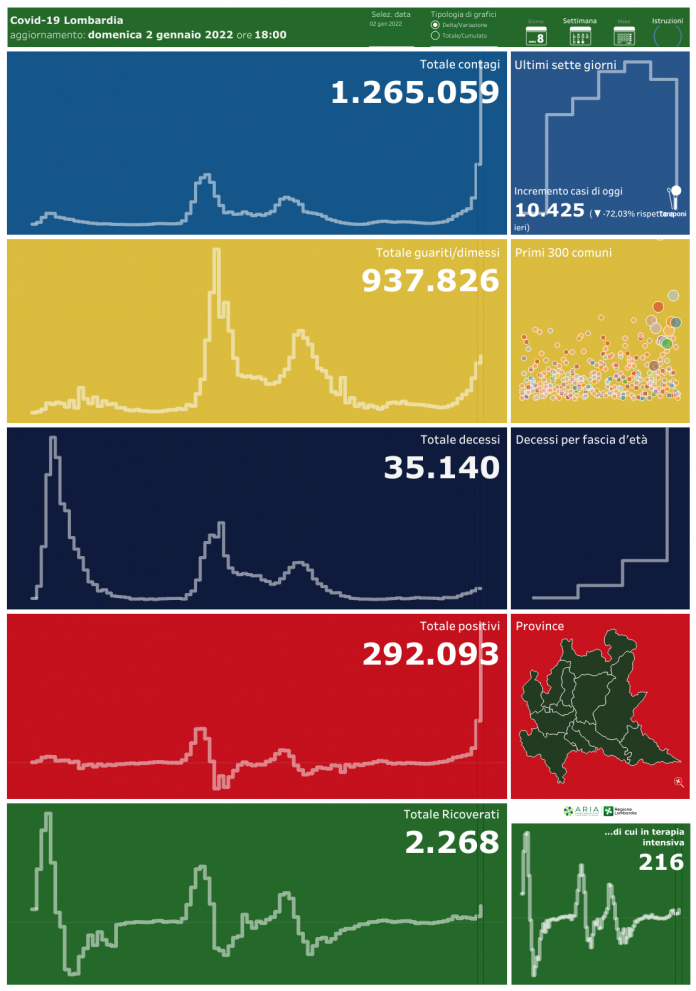 Sono 10.425 i contagi da coronavirus in Lombardia oggi, 2 gennaio 2022, secondo numeri e dati covid del bollettino della Protezione Civile e del ministero della Salute.