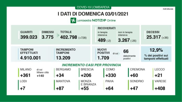 - i guariti/dimessi totale complessivo: 402.798 (+728), di cui 3.775 dimessi e 399.023 guariti