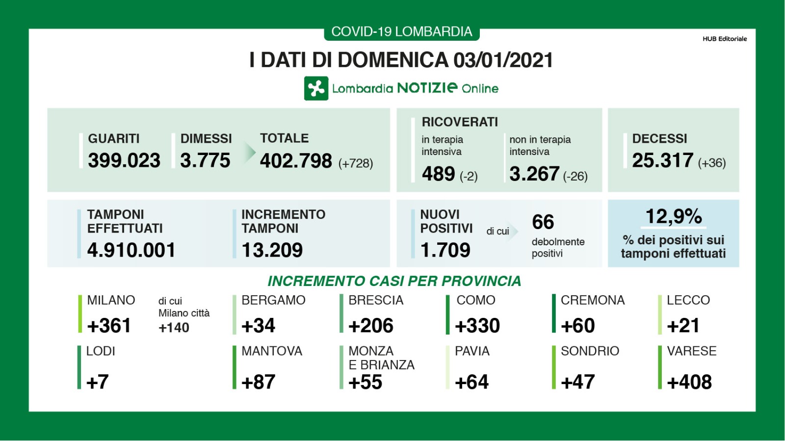 - i tamponi effettuati: 13.209 totale complessivo: 4.910.001