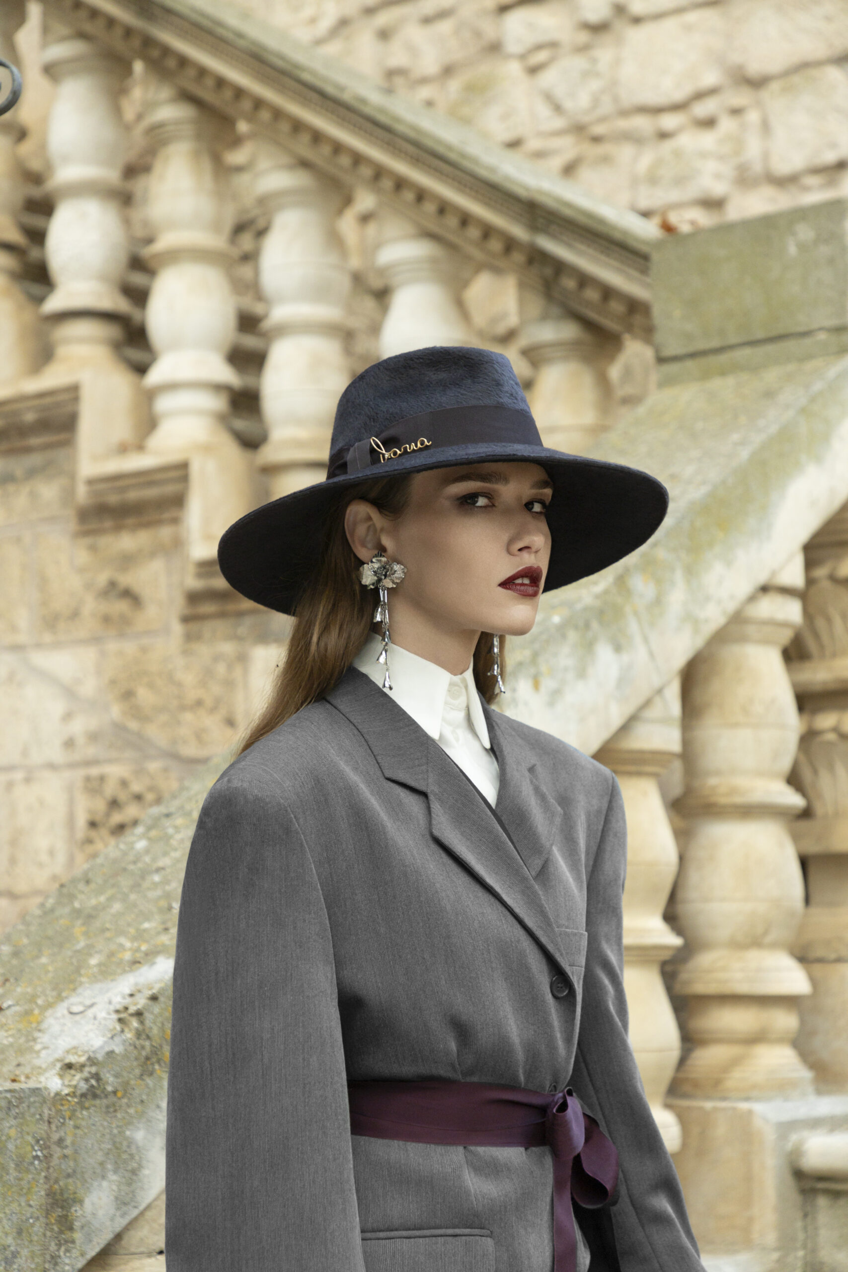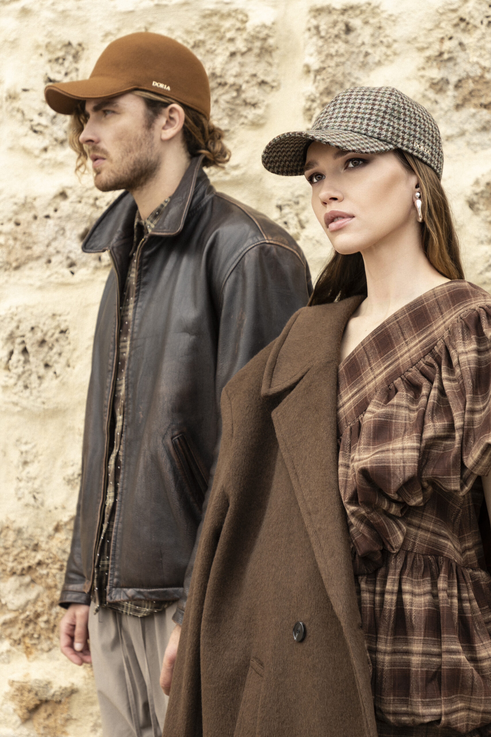 Un mix di stile classico e giocoso, con un’anima rock. Lo spirito di Doria si esprime nei cappelli western dall’allure elegante, nei classici iconici, nelle forme pure delle cloche e nelle coppole reinterpretate in chiave retrò. È uno studio sulle forme e sulla loro adattabilità, un obiettivo che Doria persegue da sempre.