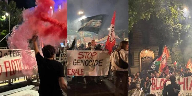 Mobilitazione nelle piazze italiane dopo l’abbordaggio della Flotilla da parte di Israele oggi 1 ottobre 2025. Da Milano a Roma, da Torino a Napoli, da Genova a Firenze, i manifestanti sono scesi in piazza a sostegno della missione diretta a Gaza per portare aiuti alla popolazione palestinese.