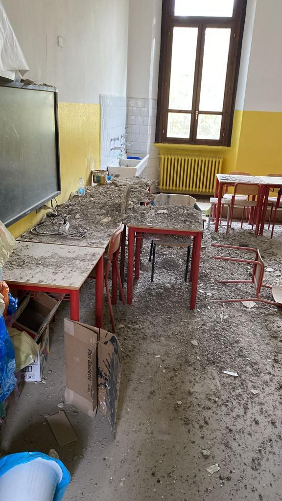 “È mera fortuna se nessuno si è fatto male poiché il distaccamento dei calcinacci è avvenuto tra la nottata e le prime ore della mattina, quando nessuno era in classe – riferiscono -. Il soffitto è letteralmente crollato sopra i banchi dei ragazzi a causa di infiltrazioni provenienti dal tetto ammalorato, per il quale ci poniamo il dubbio di quanto sia sicuro nelle parti che non hanno subito il crollo. Le classi sono state necessariamente spostate ai piani inferiori.
